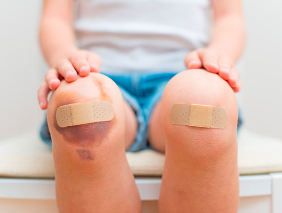 Mon garçon voulait absolument avoir un diachylon sur chacun de ses genoux.